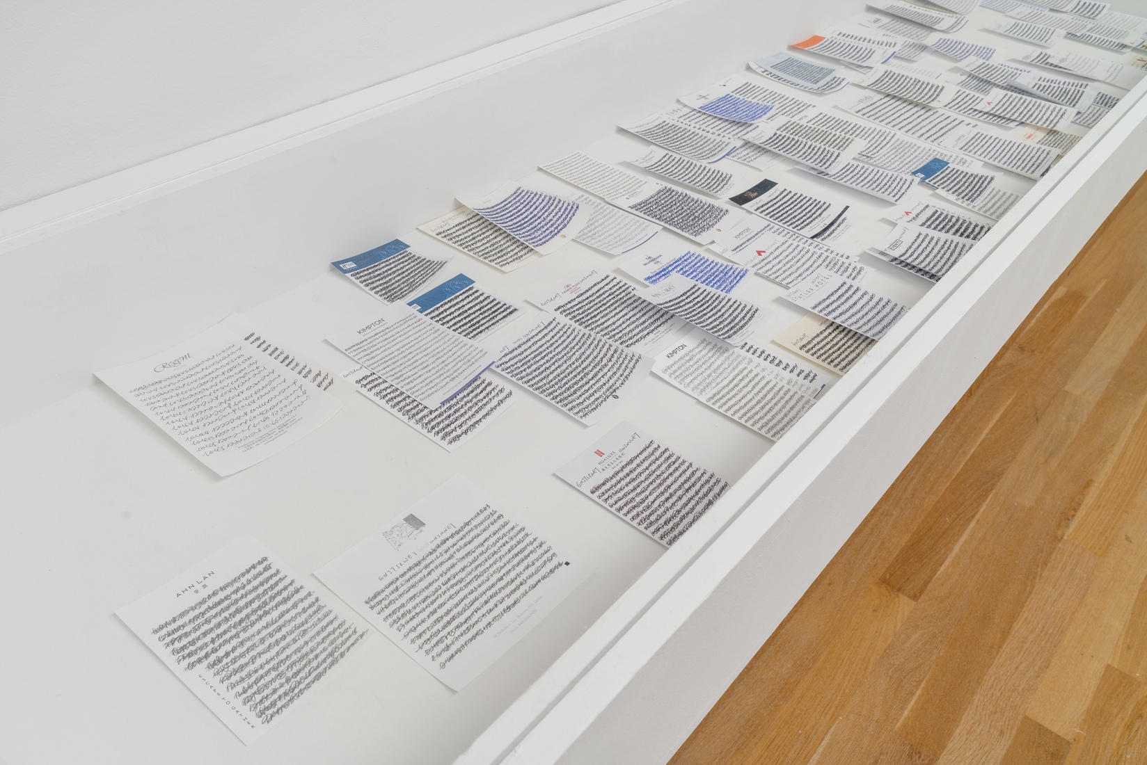 11 silkscreen prints, 34 painted wooden push pins, 1 dice, and graphite wall drawings